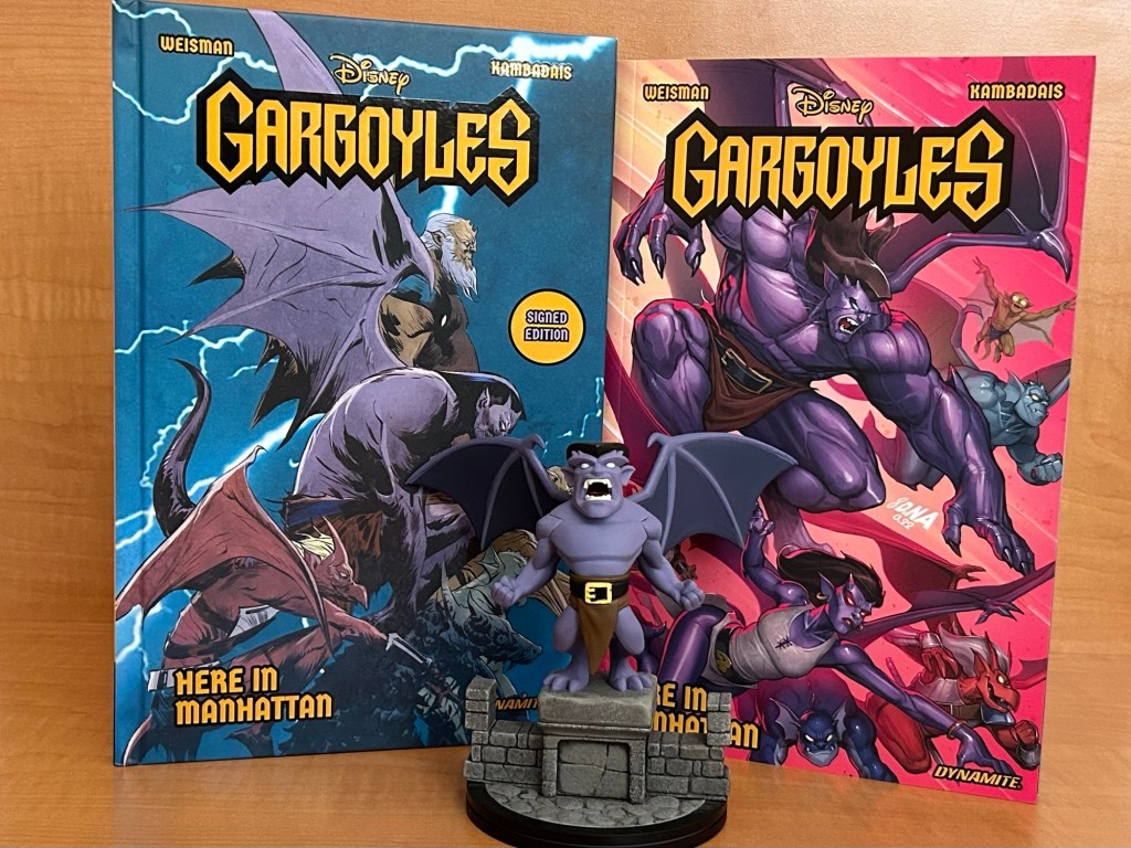 We have been living again through the Dynamite Comics Gargoyles comic series since December 2022. There was a total of twelve issues in Greg Weisman’s Here in Manhattan story illustrated by George Kambadais. Gargoyles also received a Halloween Special Issue and a Winter Special Issue will be released this December.