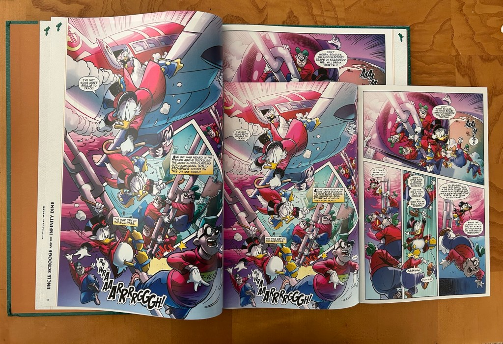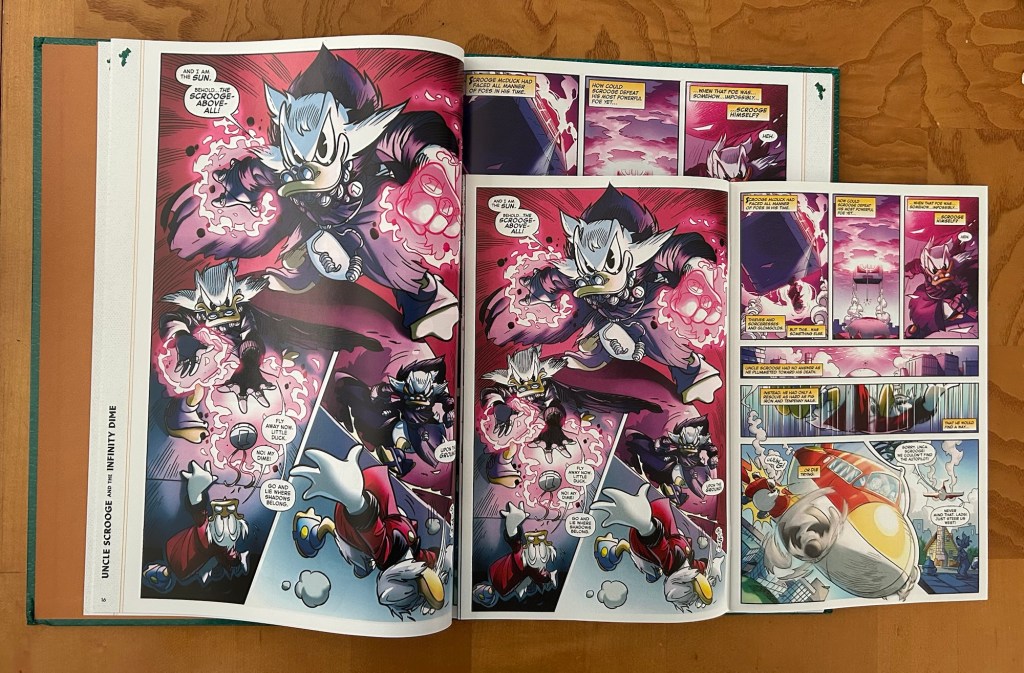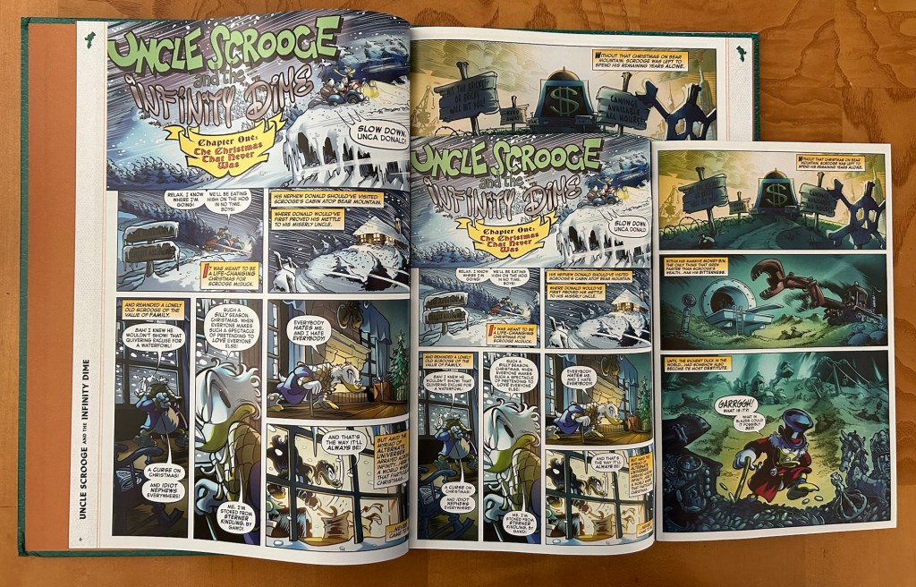 I now own the Uncle Scrooge and the Infinity Dime comic in multiple covers, a digital copy, and this new Gallery Edition hardcover. This new Gallery Edition hardcover is a fantastic upgrade with its high quality oversized pages featuring amazing artwork from this epic Duck Tale.