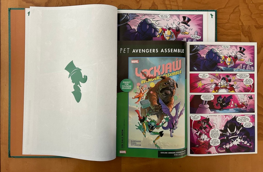 There are a couple of items from the original Uncle Scrooge & the Infinity Dime comic release that are not included in this Deluxe Gallery Edition. Three pages of Team Marvel highlighting their all time favorite Scrooge covers is not in Gallery Edition. There was also an advertisement for Marvel and Disney’s What If…? Donald Duck Became Wolverine and What If…? Donald Duck Became Thor which were released in July and September last year. Turnaround Art of Donald as Wolverine and Thor along with two sample pages from What If…? Donald Duck Became Wolverine is also absent from this edition. A Marvel and Disney: What If…? Trade Paperback which will include all of the Marvel and Disney What If…? comics is tentatively scheduled for release in October 2025. I am really looking forward to that release as well.