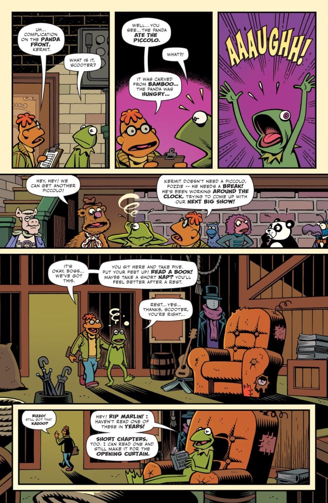 In addition, Langridge’s signature Muppet art is on full display here once again. Each character feels instantly recognizable but stylishly unique. While the Muppet performers have all sorts of tricks to help bring their characters to life onscreen, the challenge of conveying these bits of movement or emotion is seemingly next-to-impossible on a still page. Langridge overcomes this challenge easily, as he infuses his unique style on the characters, allowing readers to feel every comedic beat and genuine emotion, from a stressed Kermit to a concussed Gonzo.