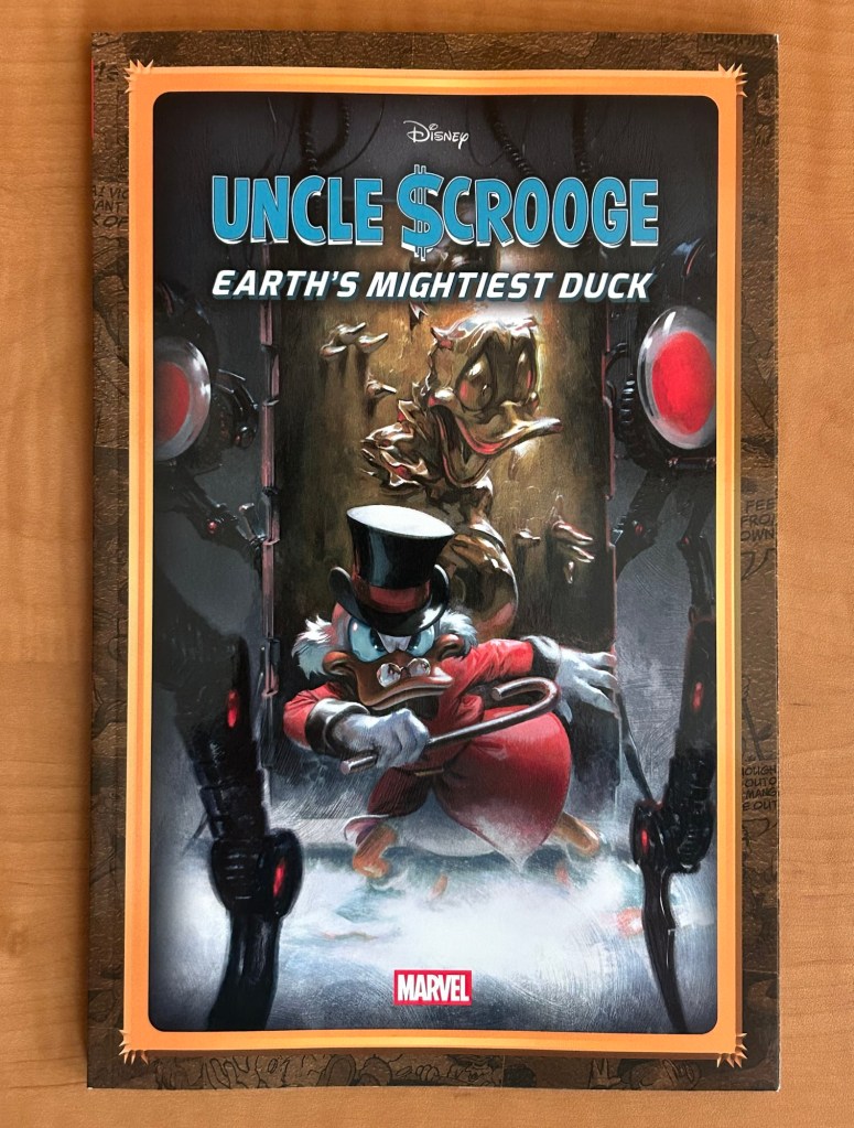 Uncle Scrooge: Earth’s Mightiest Duck marks the third major collaboration between Marvel and Disney in recent years. The project follows Uncle Scrooge and the Infinity Dime, which kicked off this crossover era, and the wonderfully imaginative Marvel & Disney: What If…? series—a seven‑issue run that reimagined classic Mickey and Friends characters in the roles of beloved Marvel heroes. Both earlier titles received collected editions: Uncle Scrooge and the Infinity Dime arrived as a deluxe oversized hardcover, while Marvel & Disney: What If…? was released as a standard‑sized trade paperback matching the format of the new Earth’s Mightiest Duck collection.